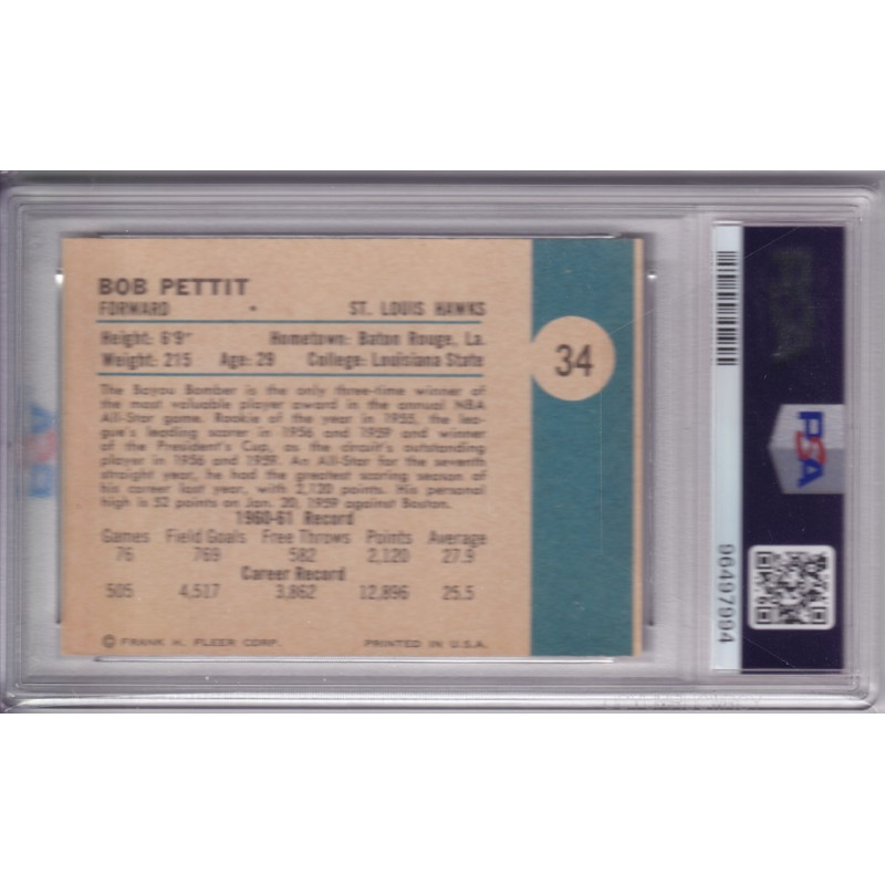 1961 Fleer #34 Bob Pettit Saint Louis Atlanta Hawks PSA 5 HOF