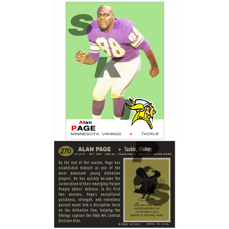 1969 STCC #270 Alan Page Topps Minnesota Vikings custom card HOF