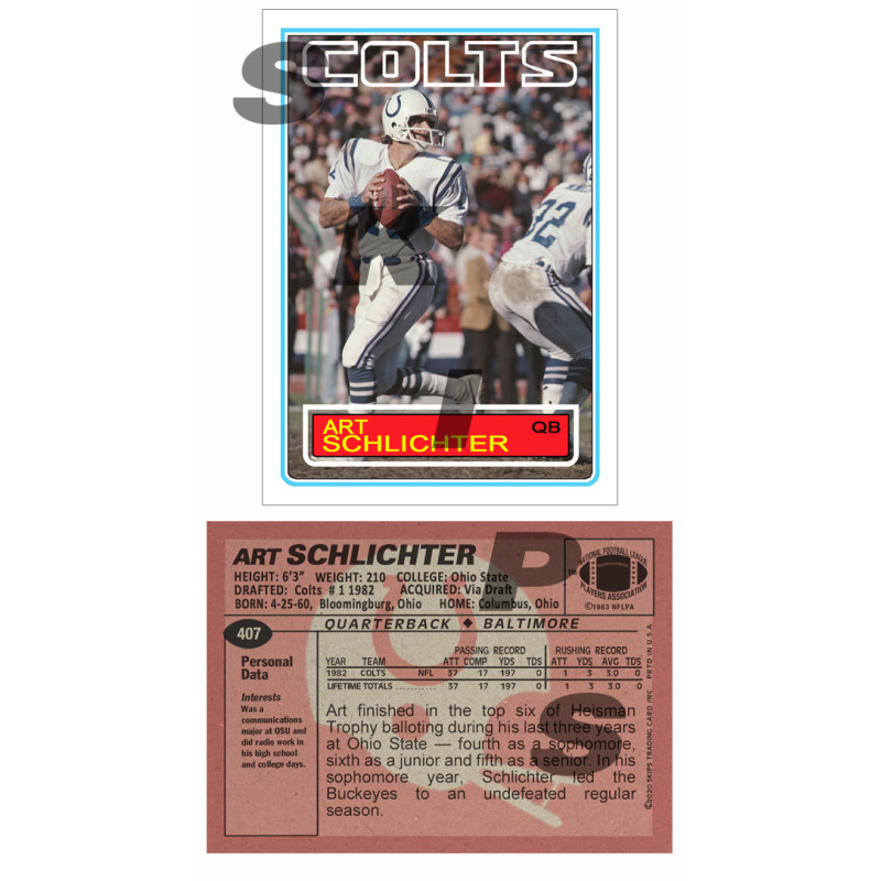 1983 STCC #407 Art Schlichter Topps Indianapolis Colts custom cards