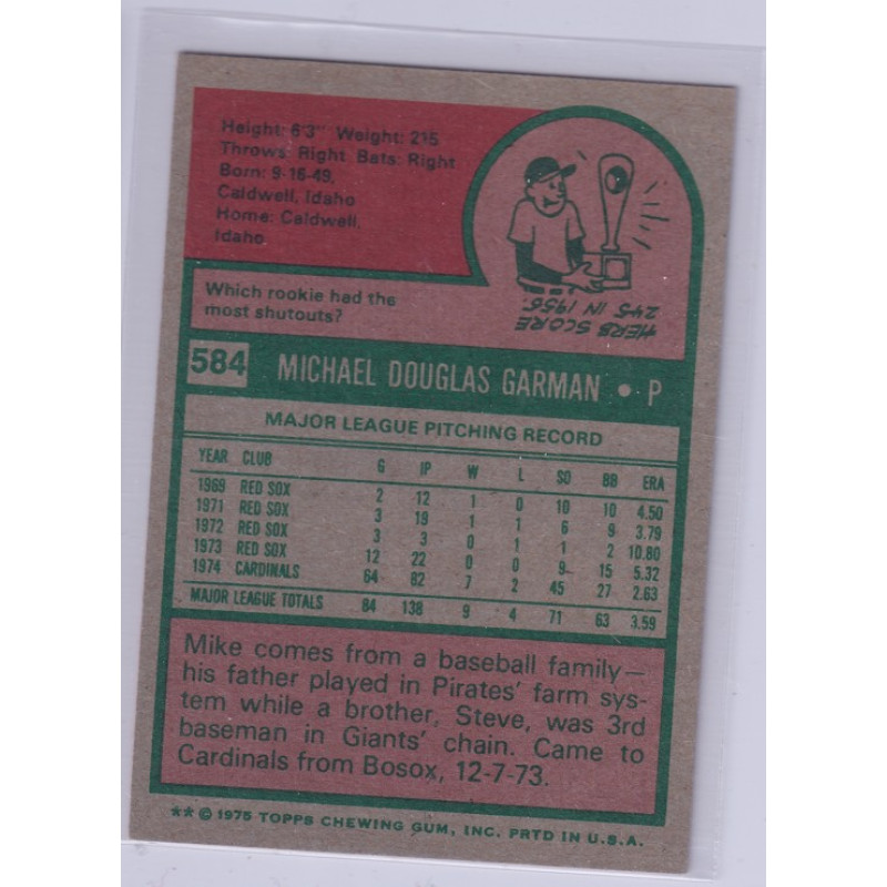 1975 Topps #584 Mike Garman St. Louis Cardinals Signed Autograph